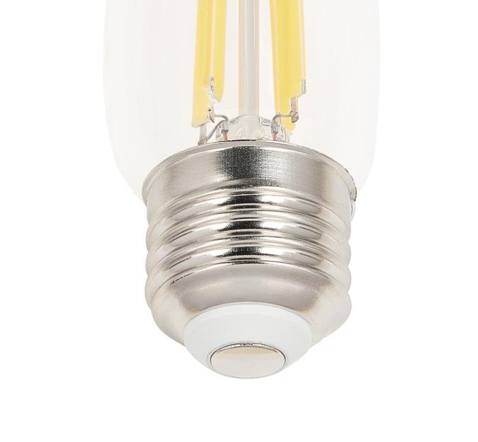 This B11 filament LED bulb, featuring the latest LED technology, looks like an incandescent torpedo light bulb but lasts longer. The energy-saving LED is ideal for decorative lighting fixtures requiring medium base bulbs, with a pristine glass design that ensures your fixtures look flawless.
