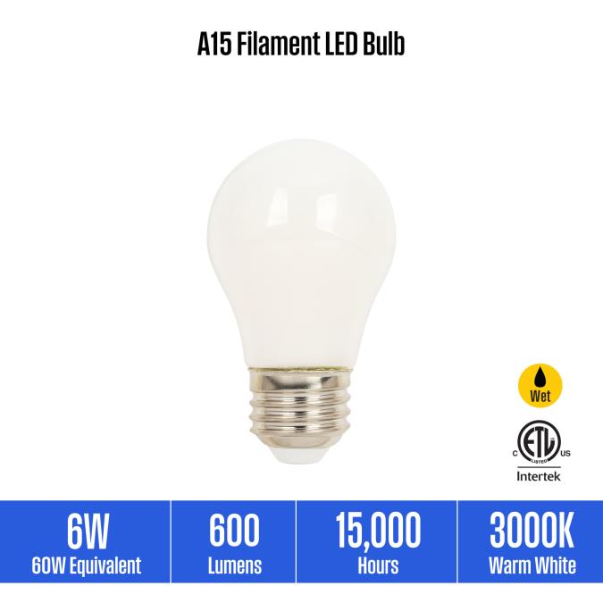 Switch to Westinghouse A15 LED light bulbs and enjoy the same brightness level as a traditional 60-watt incandescent bulb but use only 6 watts of energy.