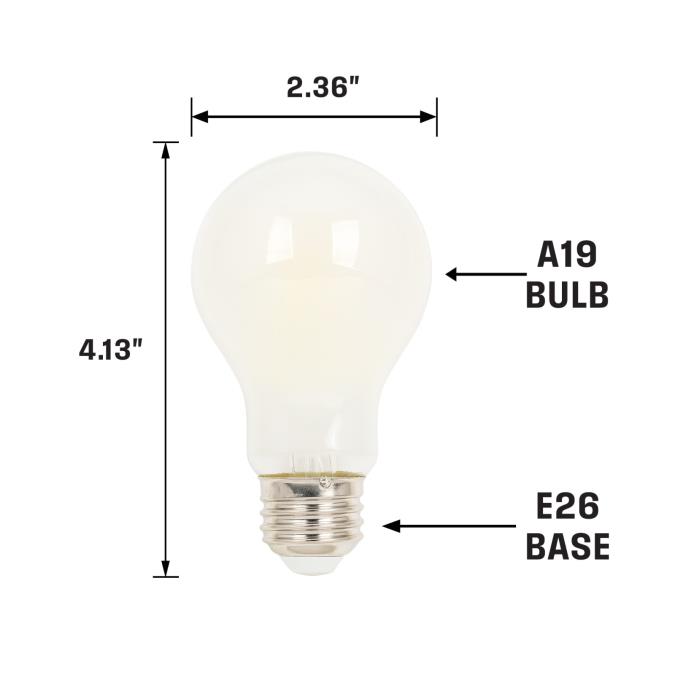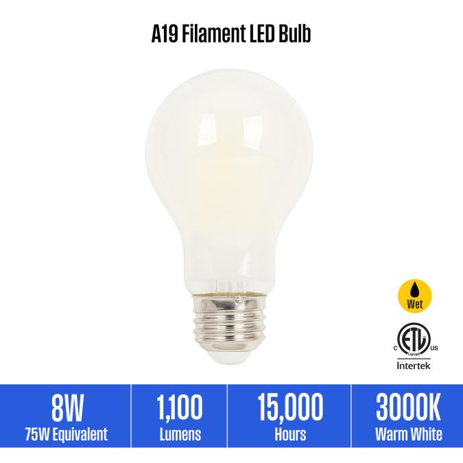 This energy-saving A19 LED light bulb is an ideal replacement for traditional incandescent A19 bulbs. With the latest LED technology, this long-lasting dimmable 3000K LED bulb provides bright, even light perfect for table and floor lamps. The soft white finish creates beautiful illumination perfect for pendants and ceiling fixtures. Suitable for use in enclosed fixtures and wet locations such as outdoor-rated wall, ceiling, and post-top lanterns.