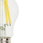 This long-lasting filament LED bulb is fully dimmable for customizable ambiance, utilizing a compatible dimmer switch. The attractive white light (3000K) adds the finishing touch to pendants, wall fixtures, and ceiling fan lights, enhancing the look of all decorative lighting fixtures. Perfect for open-design and vintage-style lighting, these durable filament bulbs mimic the glow and appearance of incandescent bulbs.