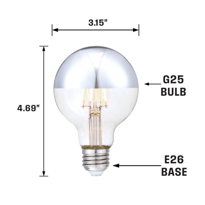Energy-saving filament LED bulbs will enhance the ambiance of all your decorative lighting fixtures. Using the latest LED technology, the long-lasting bulb has the look and feel of an incandescent half chrome globe light bulb, making it ideal for use in open-design fixtures. This half chrome LED bulb reflects light back into the fixture, creating a soft ambient glow, beautifully reflecting your surroundings and protecting your eyes from glare. Add a unique touch to vintage style fixtures and pendant lights