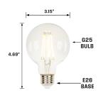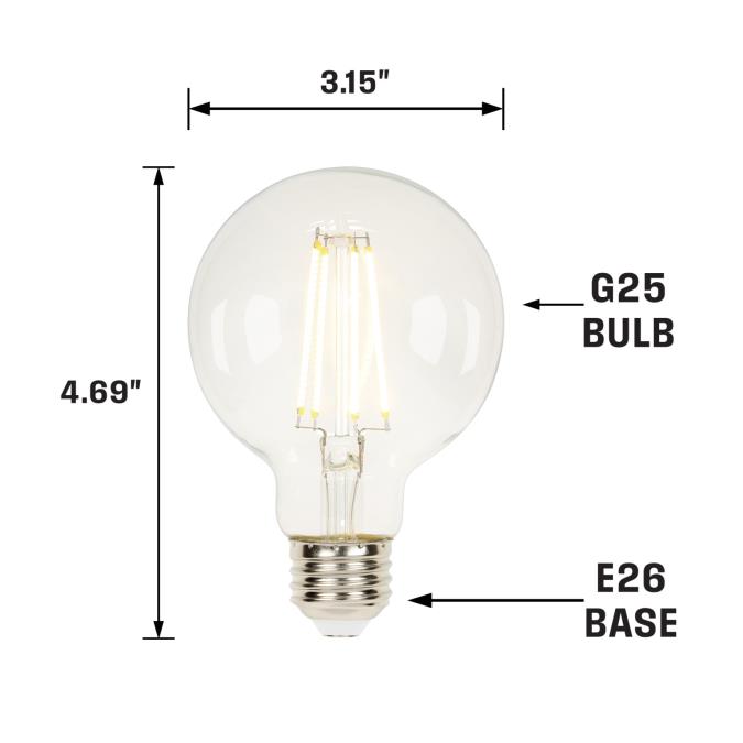 G25 LED filament energy-saving light bulb is an excellent replacement for incandescent globe light bulbs. Using the latest LED technology, the long-lasting bulb's soft white light will enhance the ambiance of all your decorative lighting fixtures. Add a unique touch to vintage style fixtures, vanity fixtures and contemporary decorative chandeliers. Suitable for use in enclosed fixtures and damp locations, you can replace less efficient outdoor light bulbs in your outdoor-rated wall lanterns.
