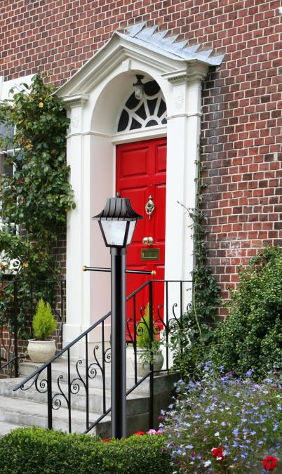 - Weather-resistant, hi-impact polycarbonate construction with black finish is versatile and coordinates well with outdoor settings