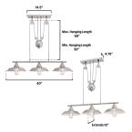 The industrial, vintage design of the Iron Hill pulley pendant is perfect for a multitude of interior styles, from modern living spaces to farmhouse kitchens. Stunning brushed nickel finish on the wide shades, enhanced by a white interior, adds distinctive light and character to any space.