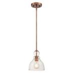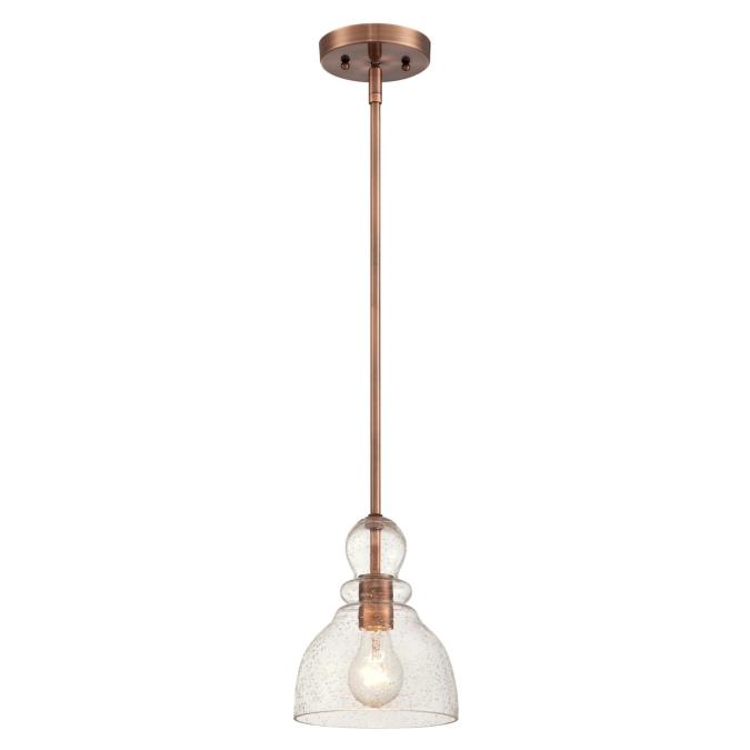 This head-turning mini pendant will brighten your entryway, dining room, kitchen or bedroom with beautiful illumination and refined style. Taking its design inspiration from vintage glass shapes, unique, hand blown seeded glass is complemented by a warm washed copper finish. Add this pendant to both traditional or modern spaces for an outstanding accent with timeless appeal.